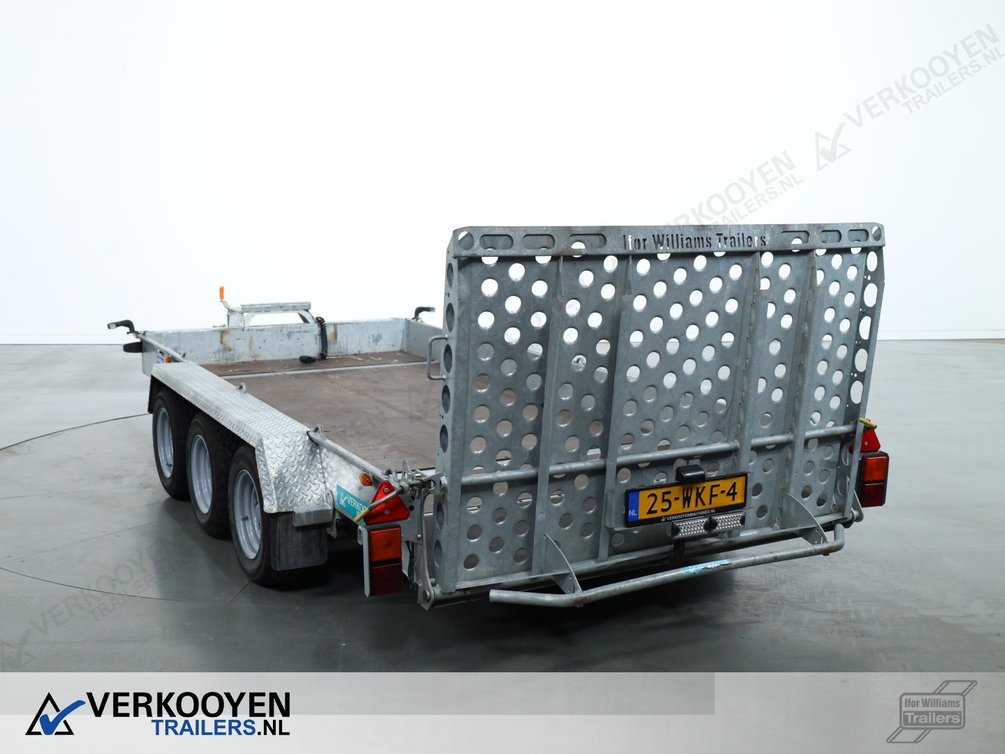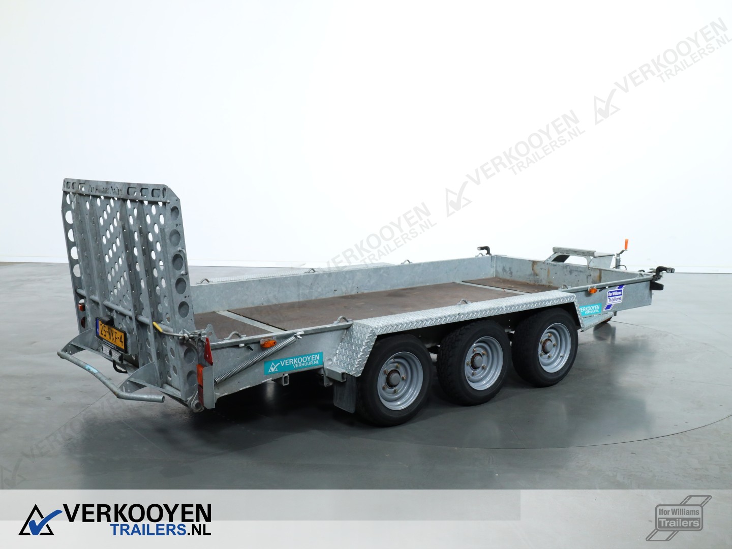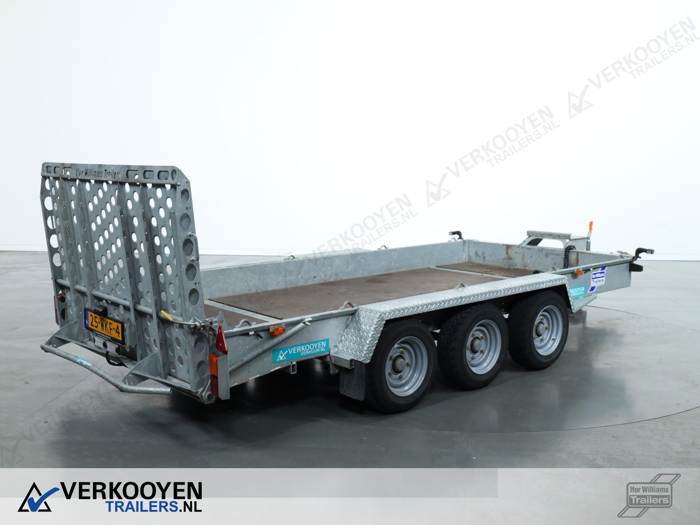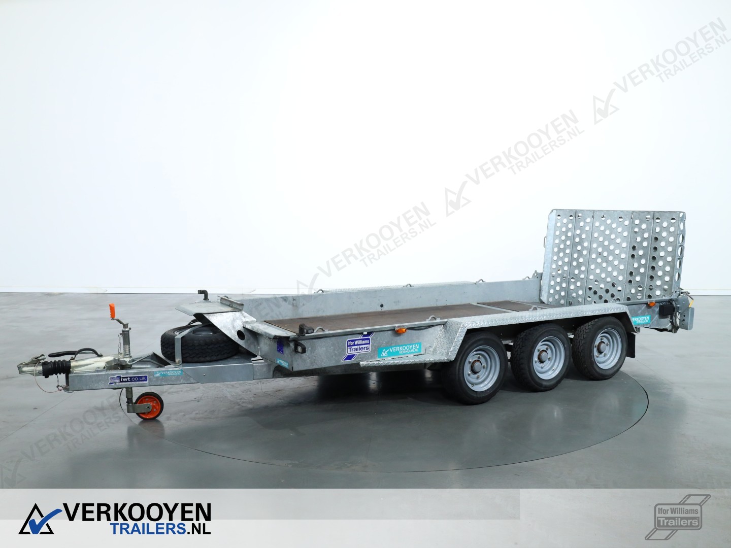 Ifor Williams GH146 machinetransporter. Deze Ifor Williams GH146 3-assige machinetransporter is uitgevoerd met bladgeveerde assen en heeft een maximaal draagvermogen van 3500 kg